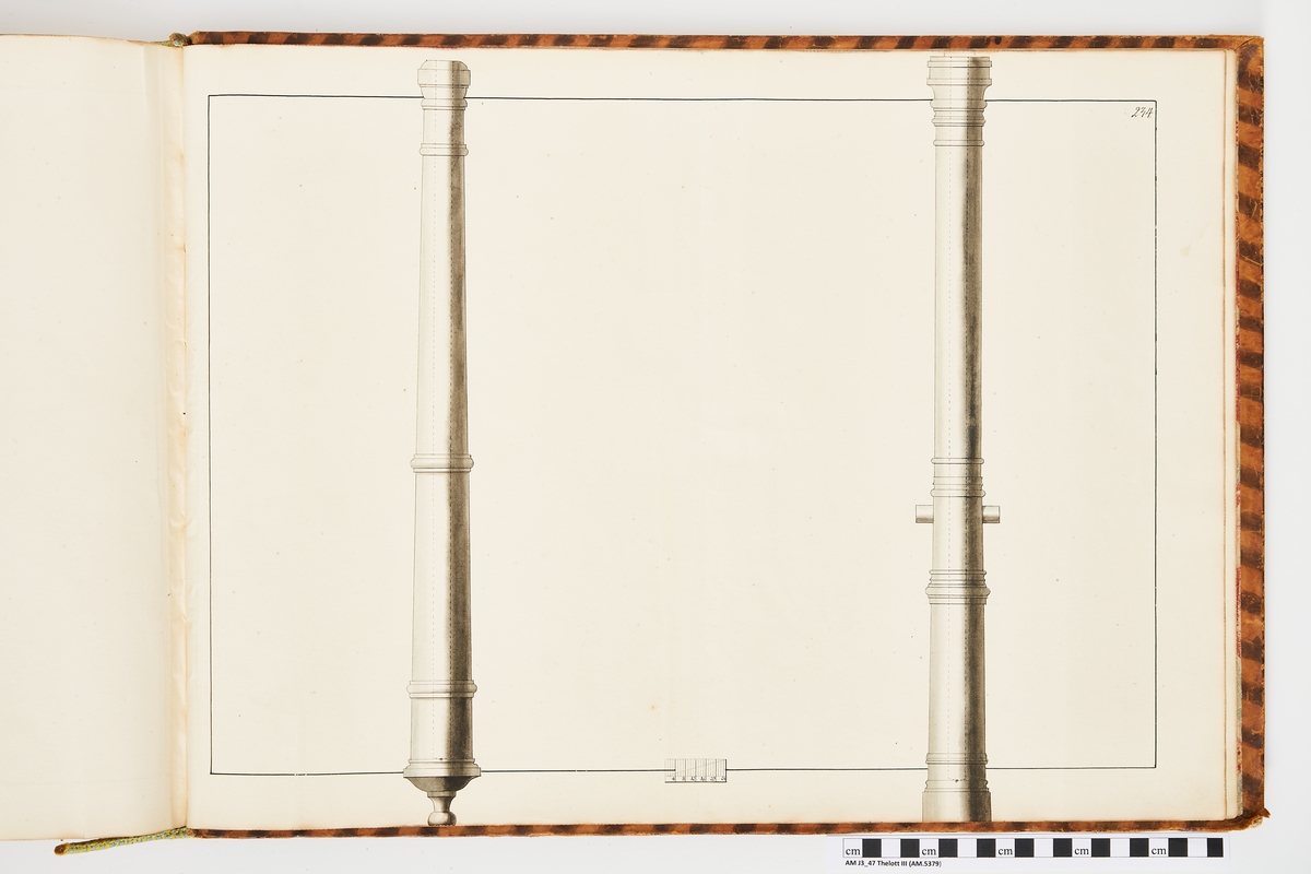Avbildning föreställande troféer av okänd nationalitet. Ingår i volym med avbildade äldre svenska eldrör förvarade på fästningar samt eldrör erövrade åren 1598-1679.