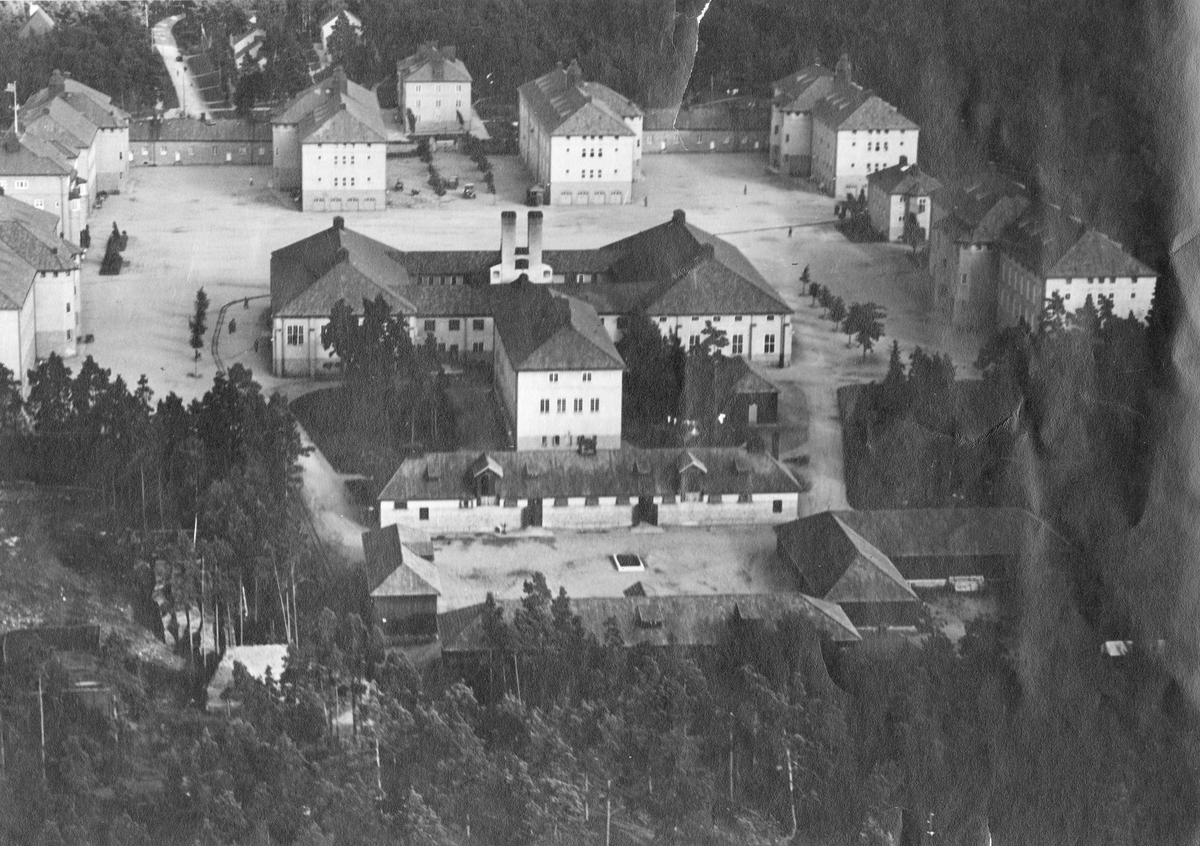 Titel: Flygfoto över Södermanlands regemente I 10 kasernområde.