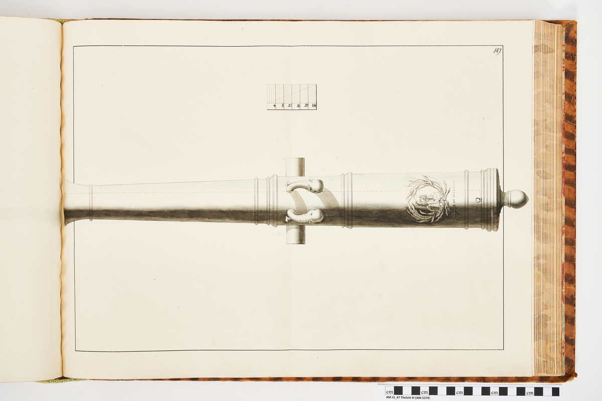 Avbildning föreställande dansk trofé med Kristian IV:s vapen. Ingår i volym med avbildade äldre svenska eldrör förvarade på fästningar samt eldrör erövrade åren 1598-1679.