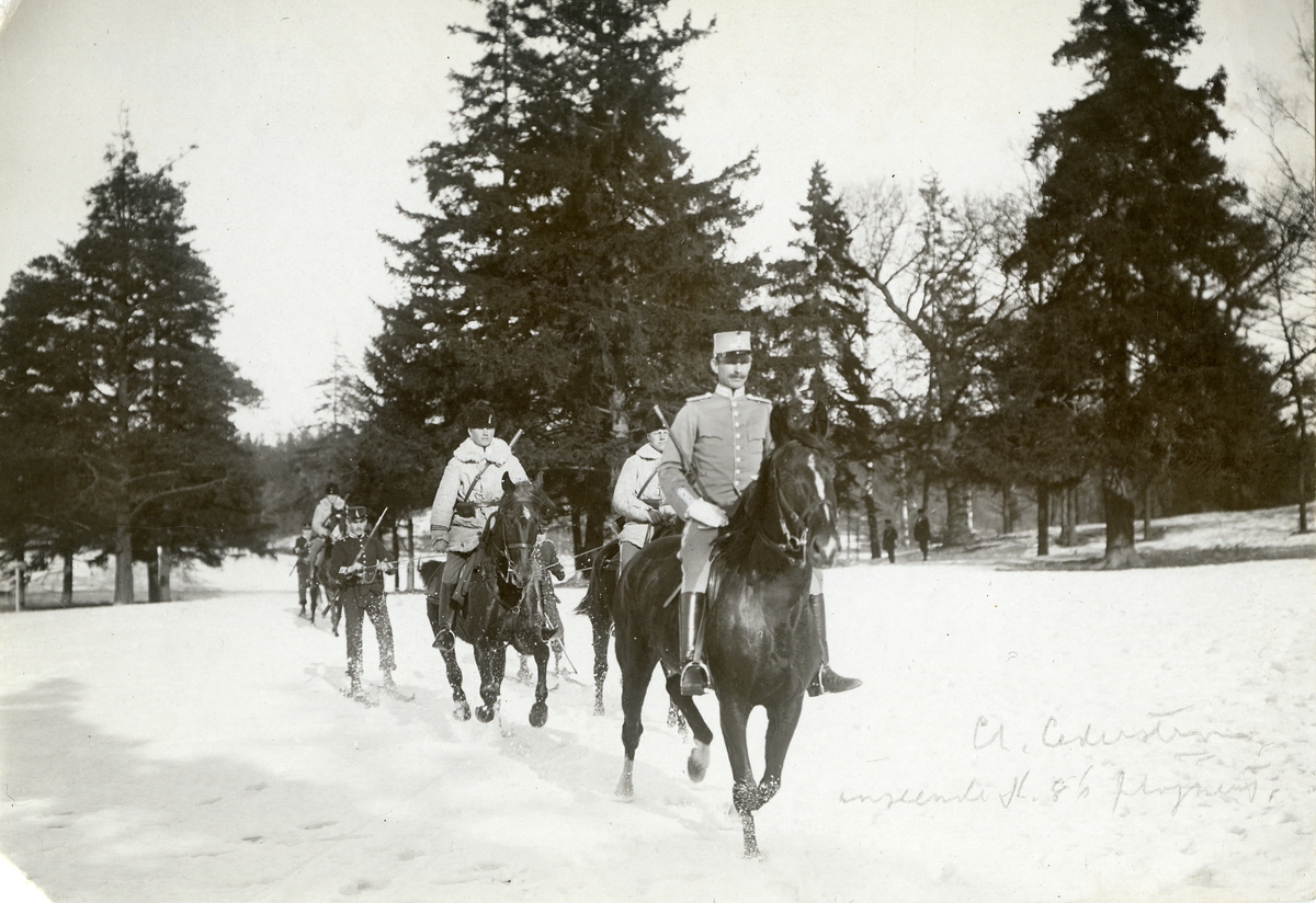 Livgardet till häst K 1, övar tolkning på skidor efter häst.