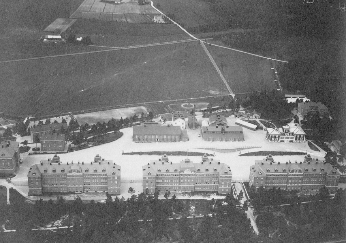 Titel: Flygfoto över Värmlands regemente I 22 kasernområde.