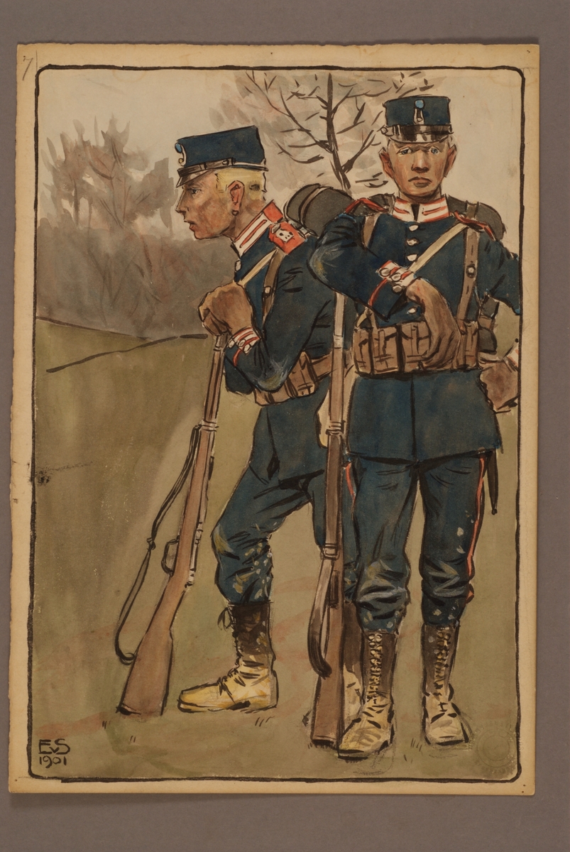 Plansch med uniform för Göta Livgarde, ritad av Einar von Strokirch.