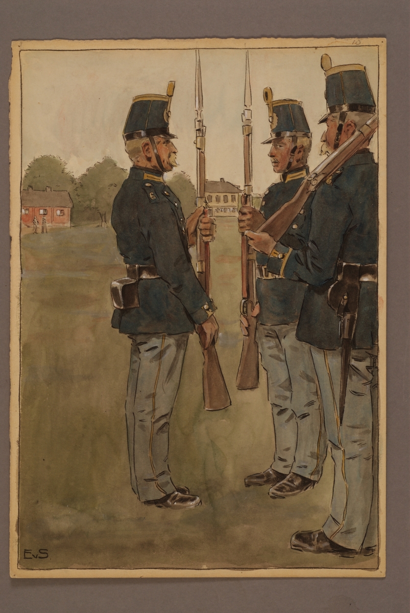 Plansch med uniform för infanteri, ritad av Einar von Strokirch.