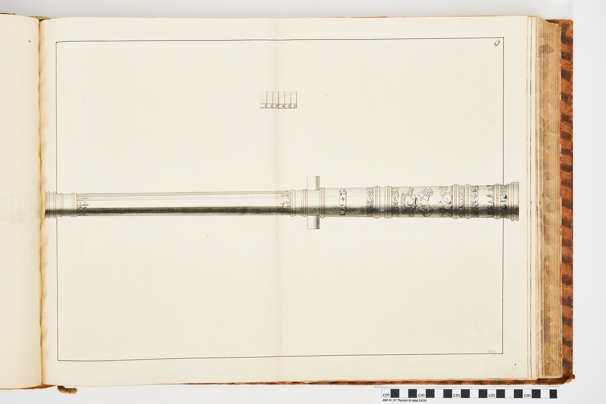 Titel: Avbildning föreställande polsk trofé med Sigismunds vapen. Ingår i volym med avbildade äldre svenska eldrör förvarade på fästningar samt eldrör erövrade åren 1598-1679.