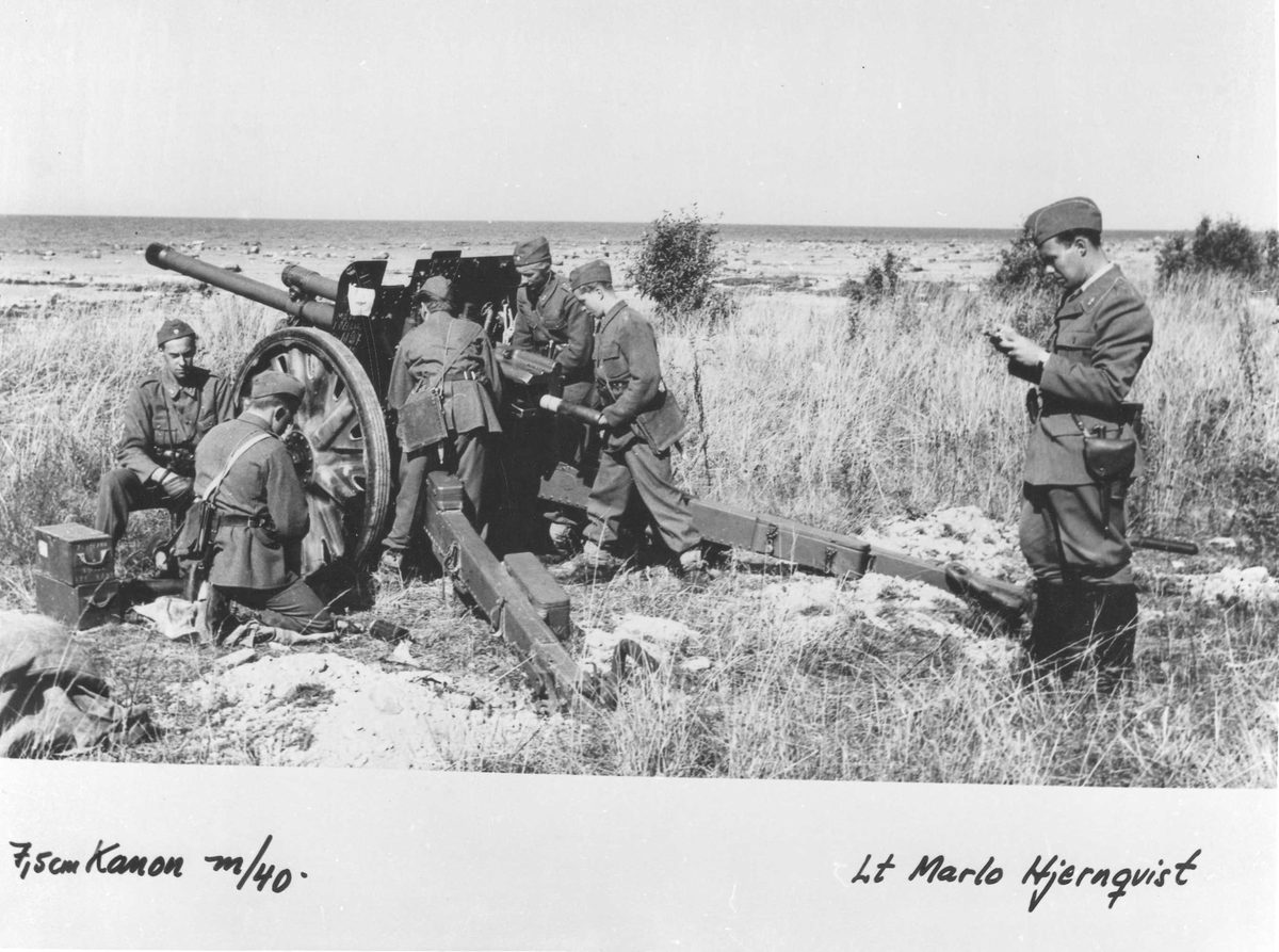 Gotlands artilleriregemente A 7 har skjutövning vid kusten med 7,5 cm kanon m/1940. I bild löjtnant Marlo Hjernqvist.