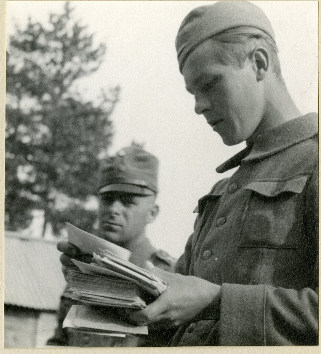 Titel: Utdelning av post till soldater.