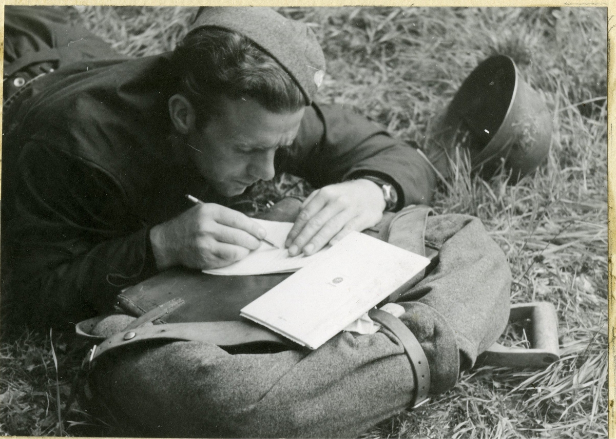 Värnpliktig skriver brev, beredskapstiden.