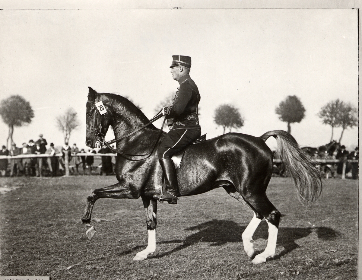 Titel: Officer Bertil Sandström på hästen Sabel under dressyruppvisning.