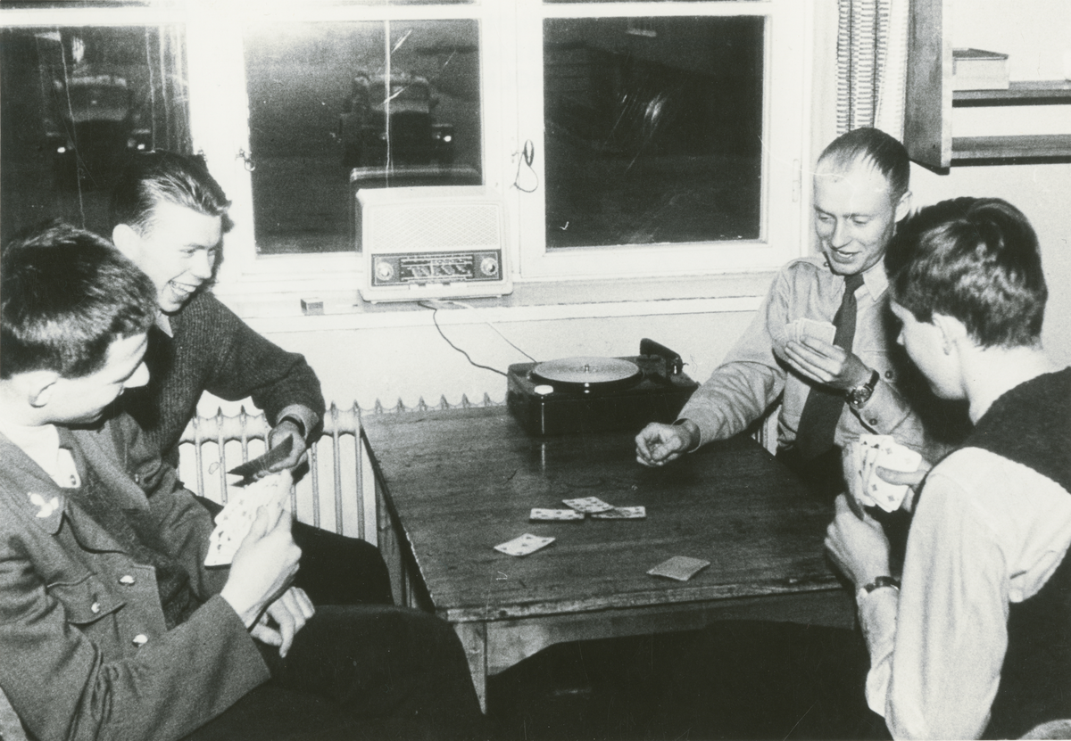 Stabsfurirskolan i Göteborg. Soldater spelar whist i logementet.