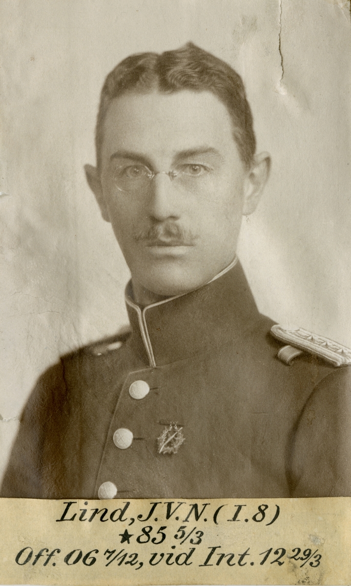 Porträtt av Johan Vilhelm Nils Lind, officer vid Upplands infanteriregemente I 8 och Intendenturkåren.