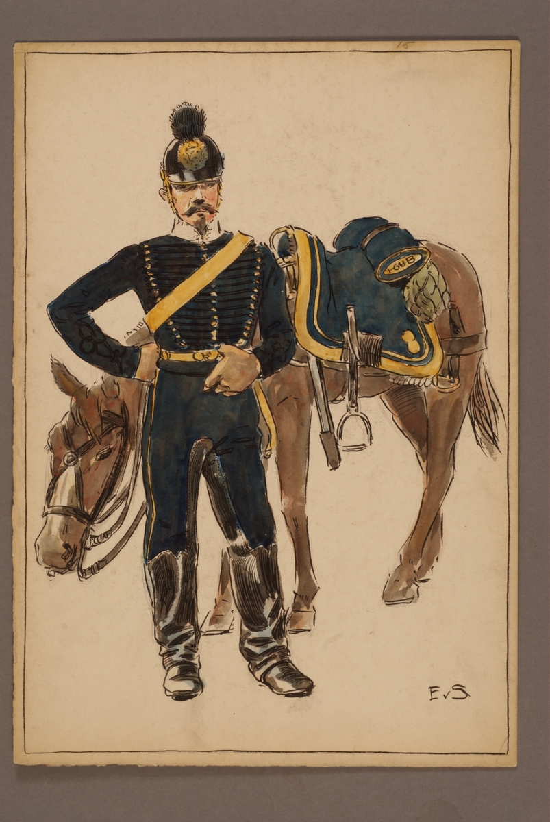 Plansch med uniform för Wendes artilleriregemente, ritad av Einar von Strokirch.