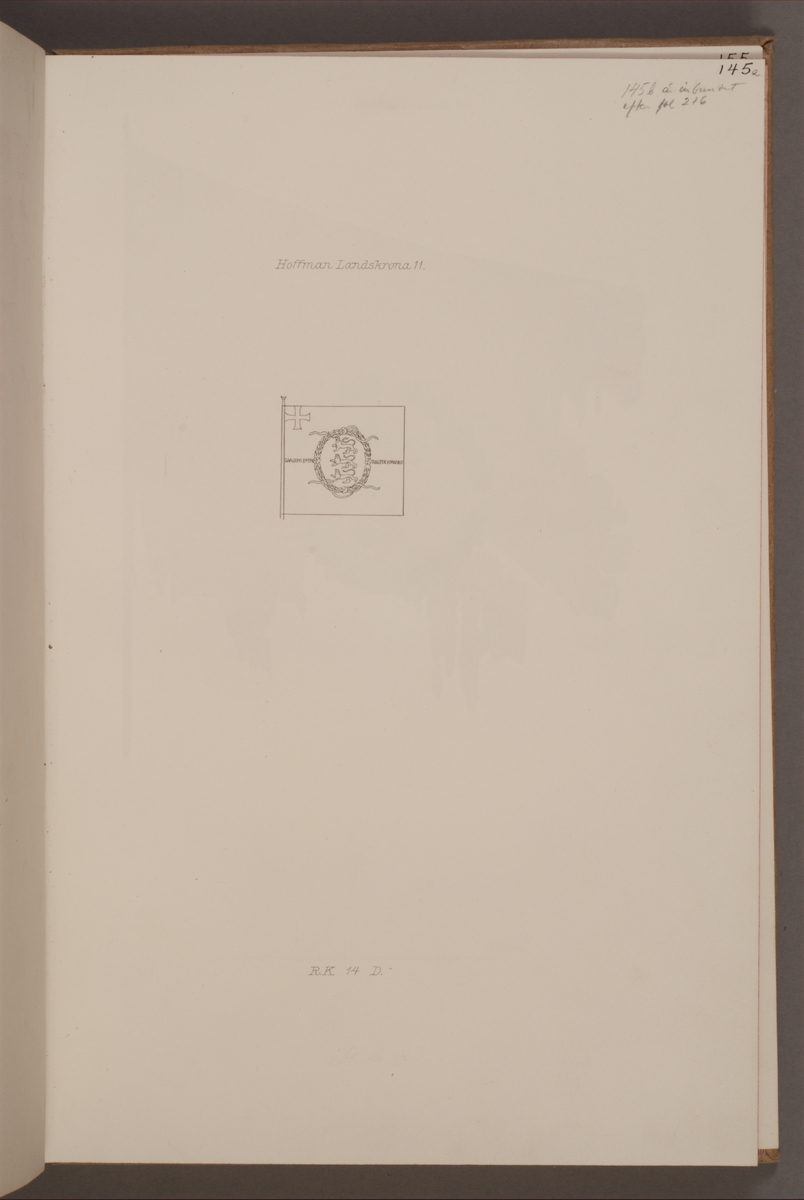 Avbildning i gouache föreställande detalj av fälttecken taget som trofé av svenska armén. Den avbildade fanan finns inte bevarad i Armémuseums samling.