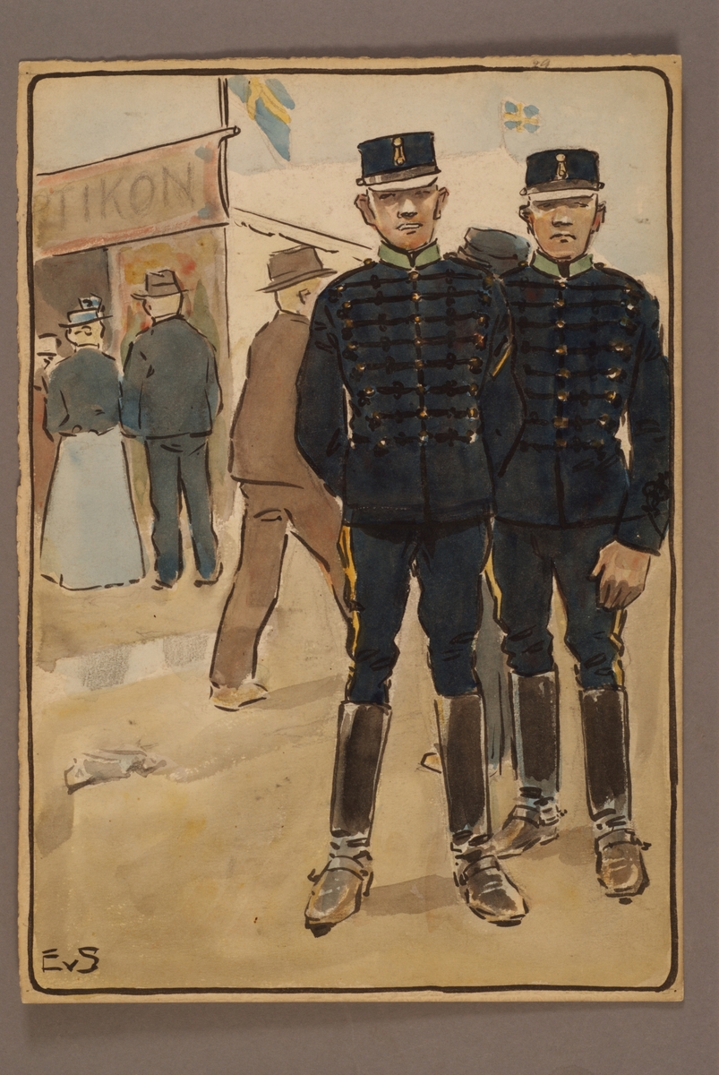 Plansch med uniform för Gotlands artilleriregemente, ritad av Einar von Strokirch.