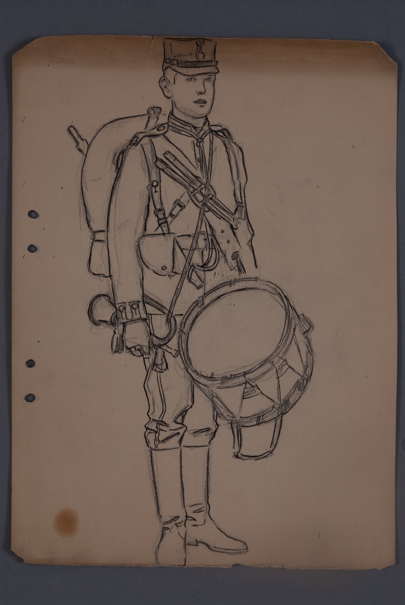 Uniformsskiss av trumslagare, teckning av Einar von Strokrich.