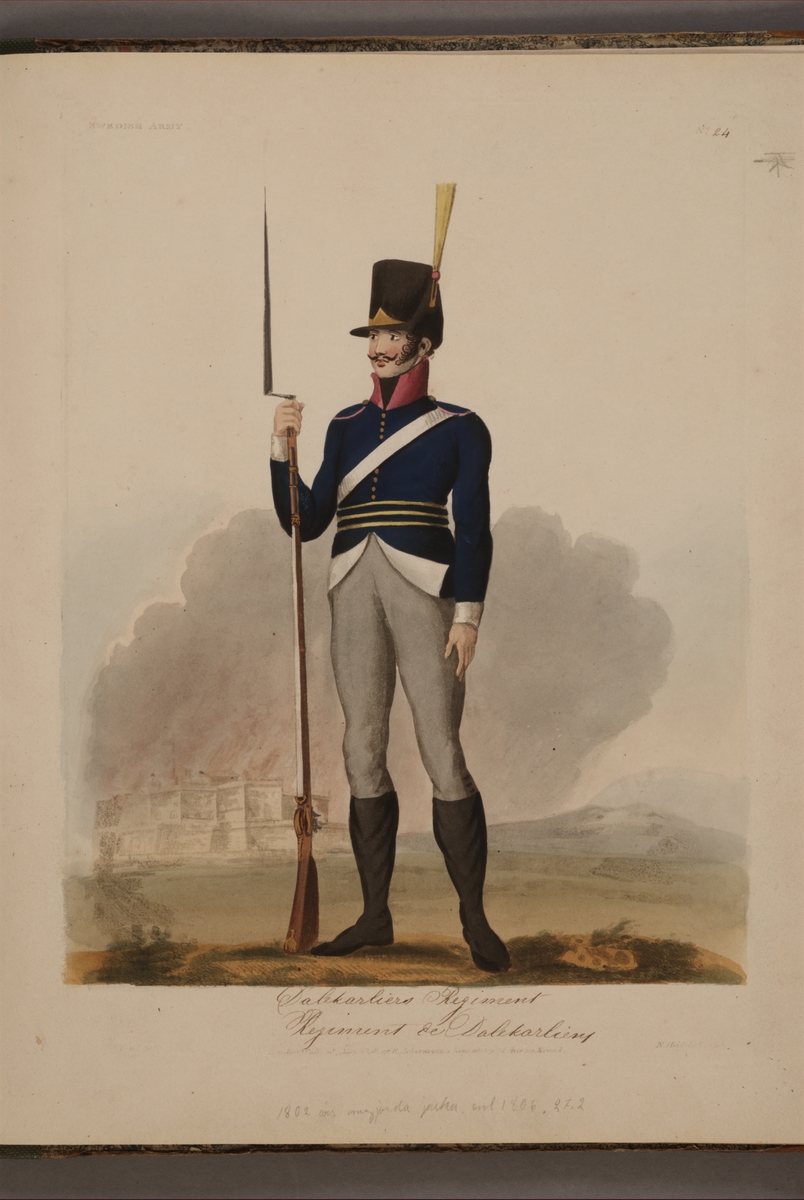 Plansch med uniform för Dalregementet, ritad av Frederic Eben i boken The Swedish Army, utgiven 1808.