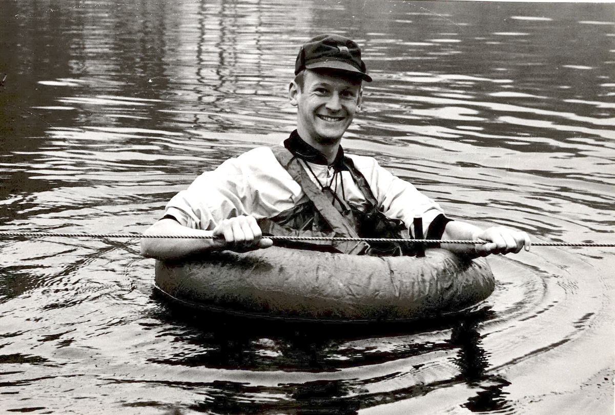 Titel: Elev från infanterikadettskolan i Ulriksdal korsar vattenled.
