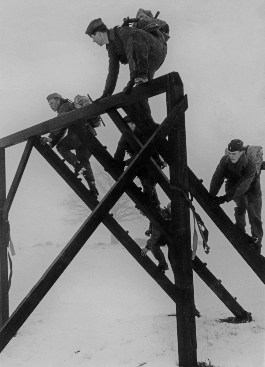 Övning på hindergård, Livgrenadjärregementet I4 Linköping.