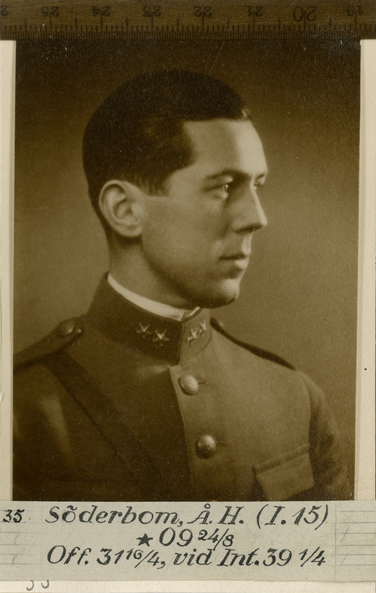 Porträtt av Åke H:son Söderbom, officer vid Älvsborgs regemente I 15 och Intendenturkåren.
