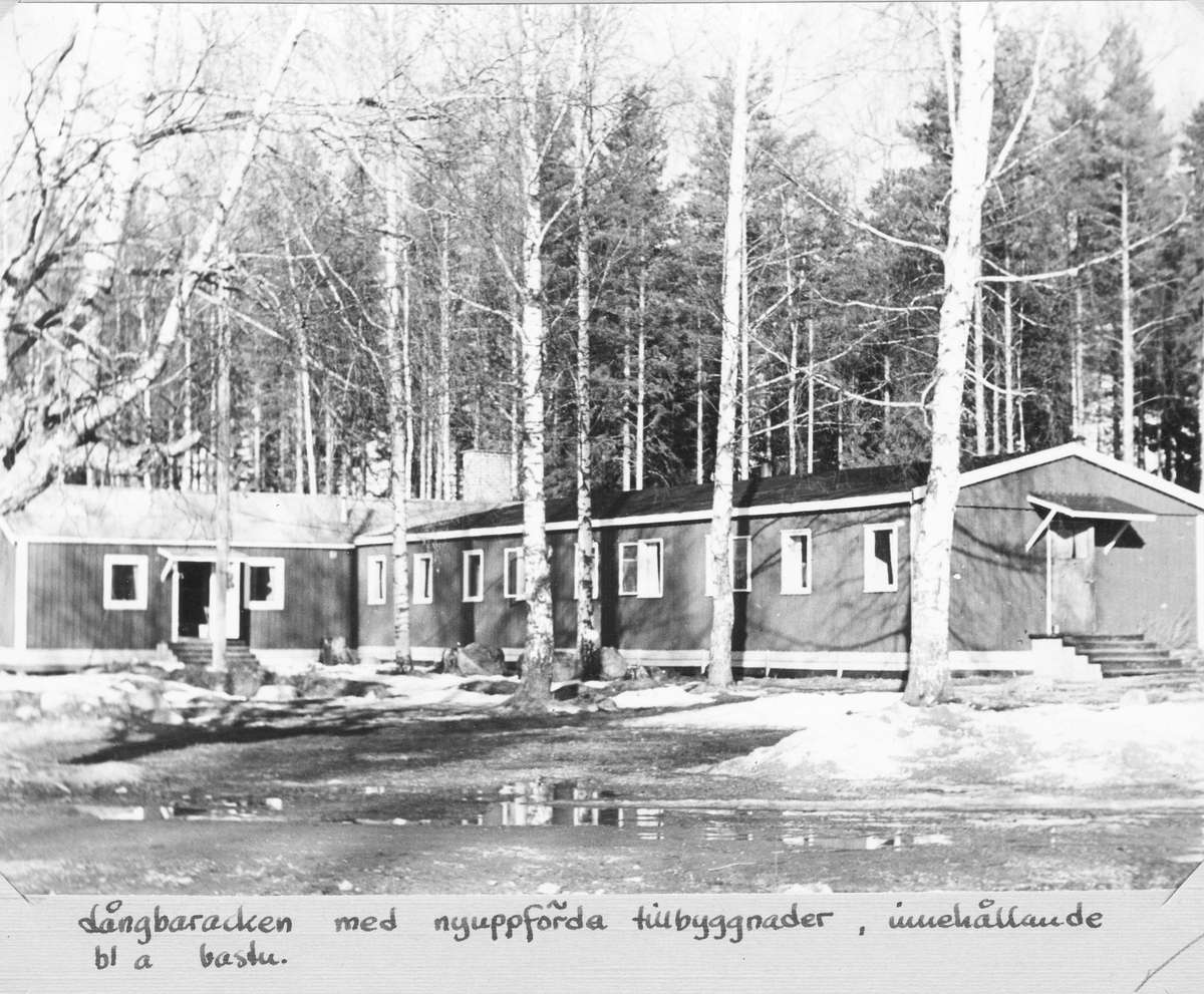 Stagården, Bollnäs. Långbaracken med nyuppförda tillbyggnader med bland annat bastu.