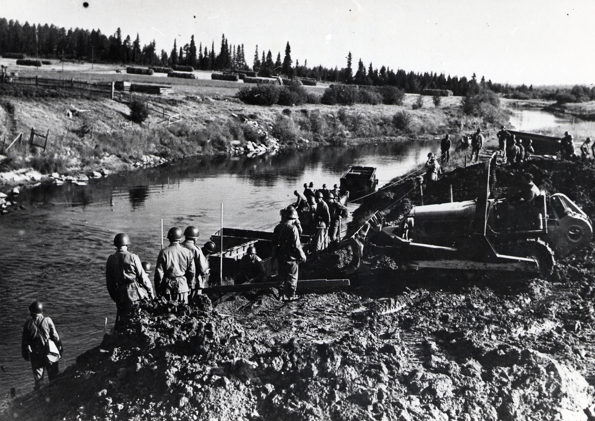 Ingenjörstrupper, broslagning. Soldater i uniform m/1939.