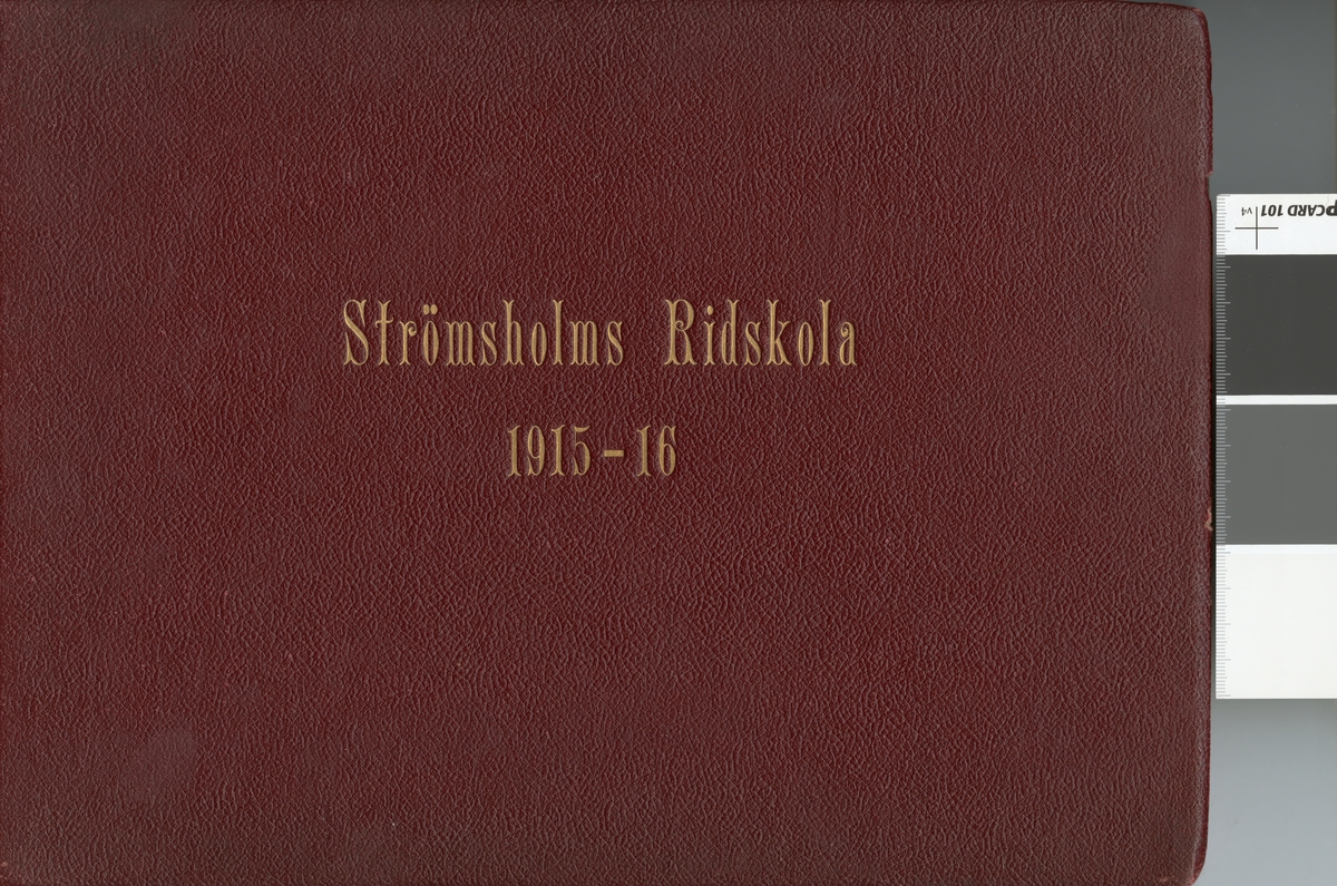 Titel: Omslag till fotoalbum "Strömsholm Ridskola 1915-1916".