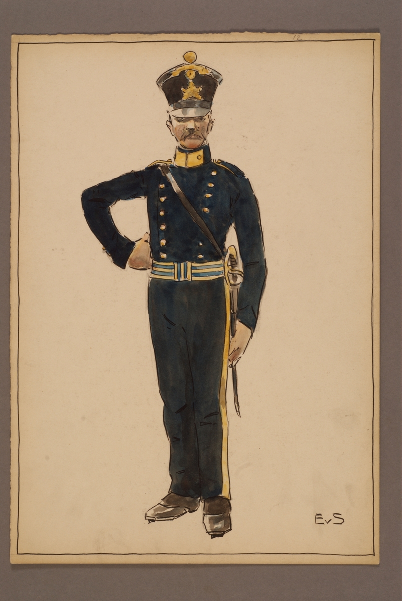Plansch med uniform för tygstatskompaniet vid Svea regemente, ritad av Einar von Strokirch.
