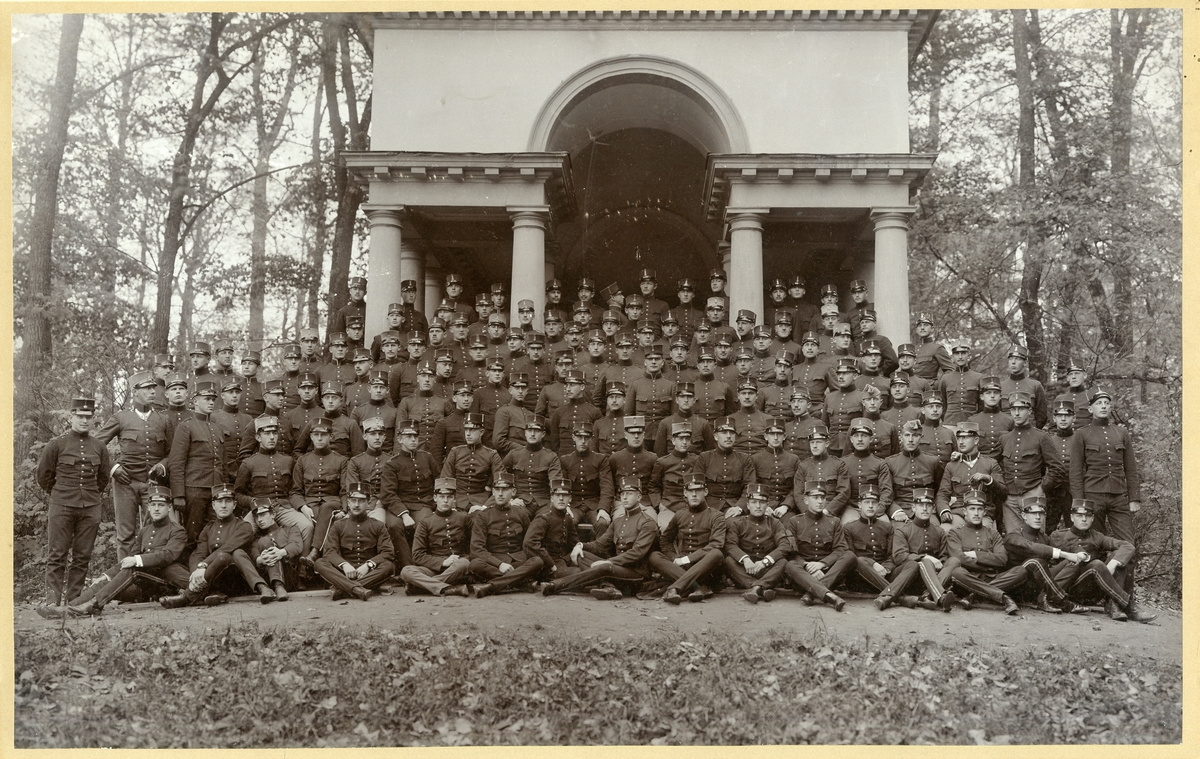 Titel: Grupporträtt av utexaminerade elever från krigsskolan.