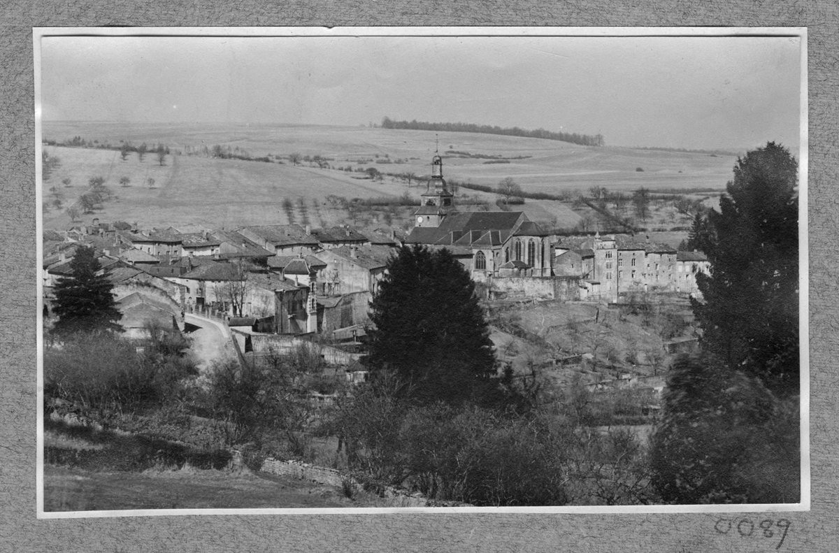Titel: Vy över en stad.