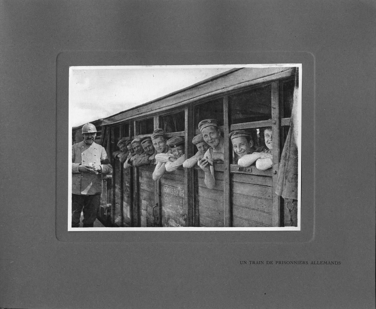 Titel: Text i fotoalbum: "Ett tåg med tyska fångar".
