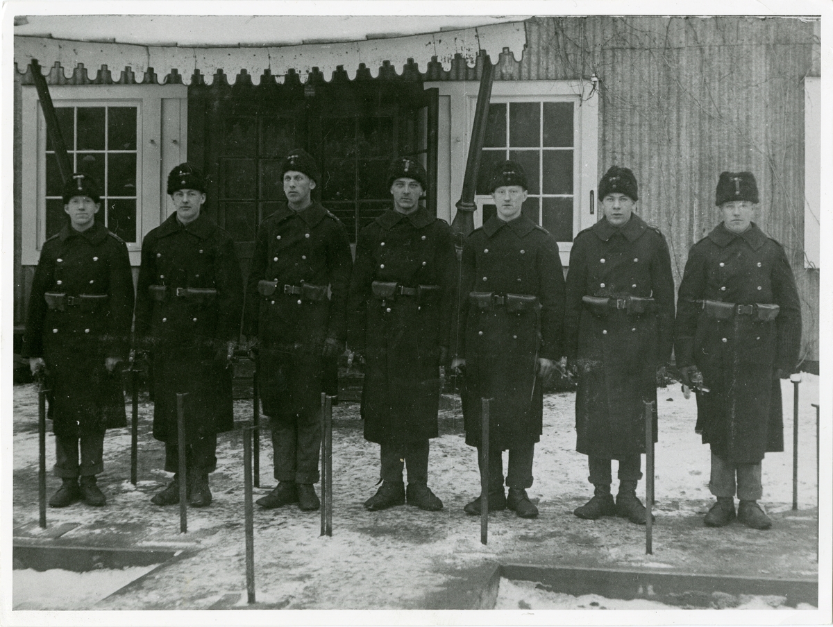 Titel: Uppställning framför vaktstuga 1910.