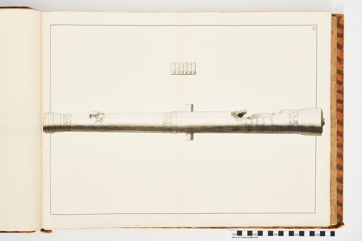 Avbildning föreställande rysk trofée som av kung Gustaf Adolf är tagna med Ivangrada år 1612. Ingår i volym med avbildade äldre svenska eldrör förvarade på fästningar samt eldrör erövrade åren 1598-1679.