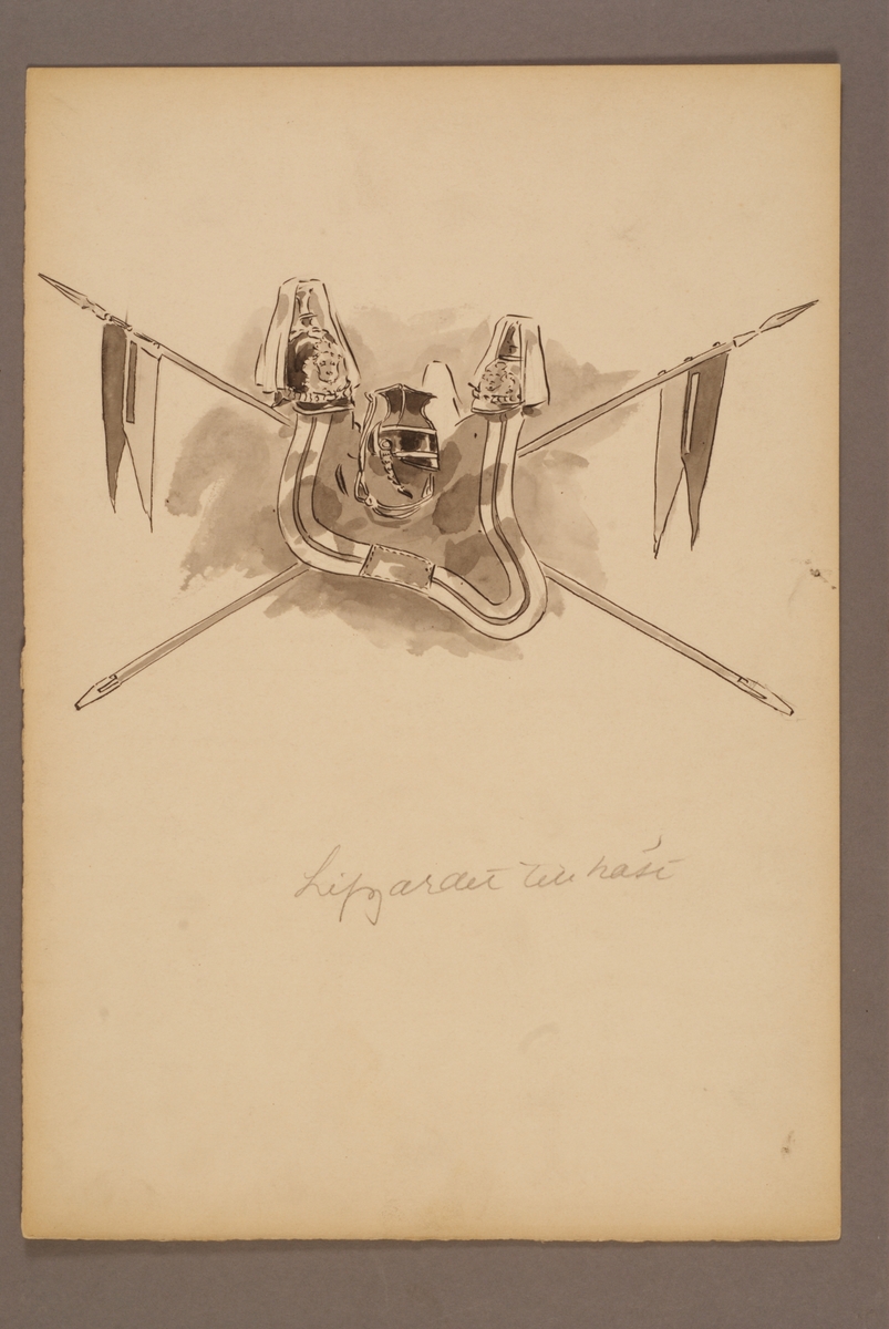 Plansch med utrustning för Livgardet till häst, ritad av Einar von Strokirch.