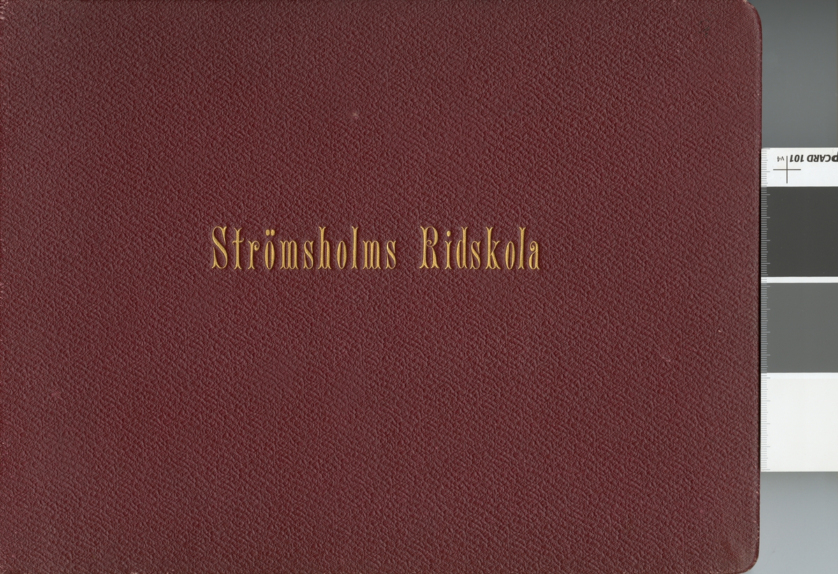 Titel: Omslag till fotoalbum innehållande bilder från Ridskolan på Strömsholm.
