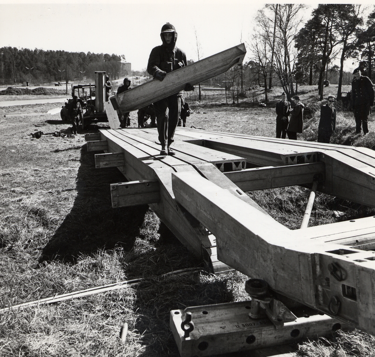 Titel: Ingenjörstrupper, broslagning, övning på torra land uniform 1960-tal.