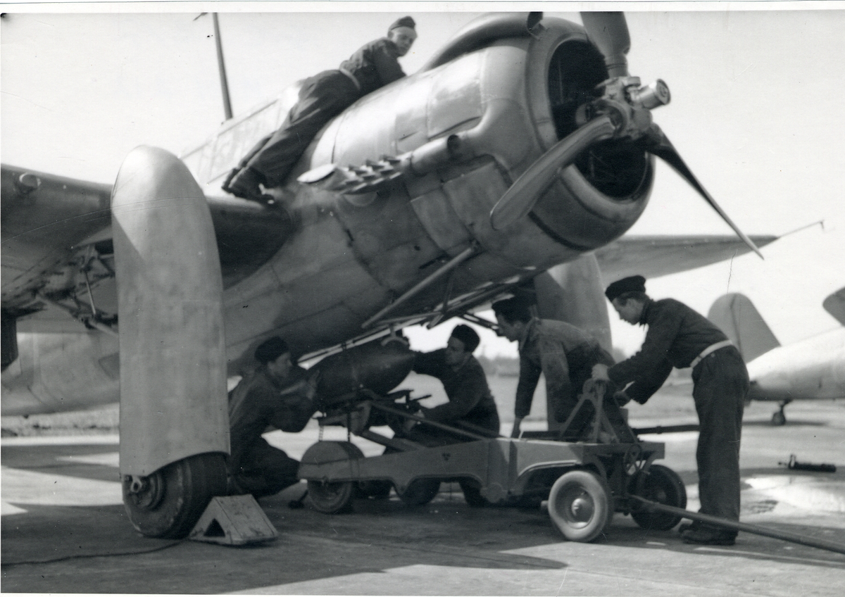 Titel: Bombflygplan SAAB B 17. Fotografering 1940-talet.