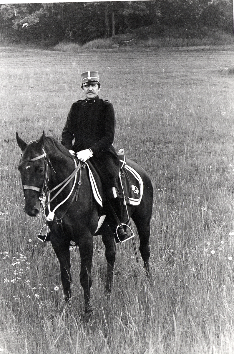 Titel: Livgardets dragoner K 1, uppvisning av historiska kavalleriuniformer på Fisksjöäng.