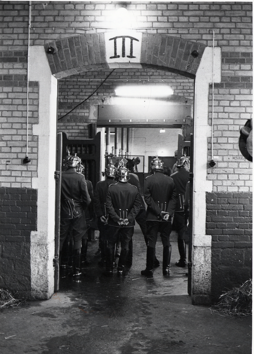 Titel: Livgardets dragoner K 1 övar inför kungabröllopet.