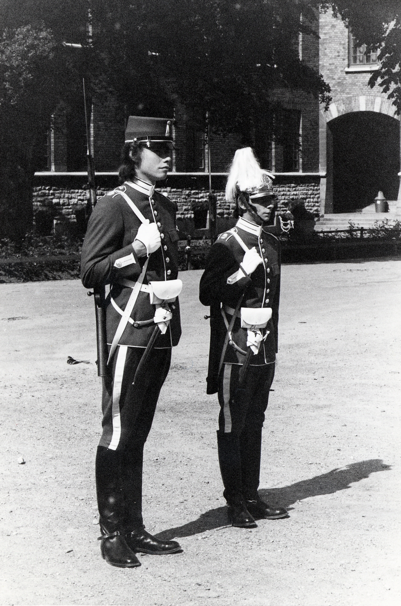 Titel: Livgardets dragoner K 1 övar inför kungabröllopet.