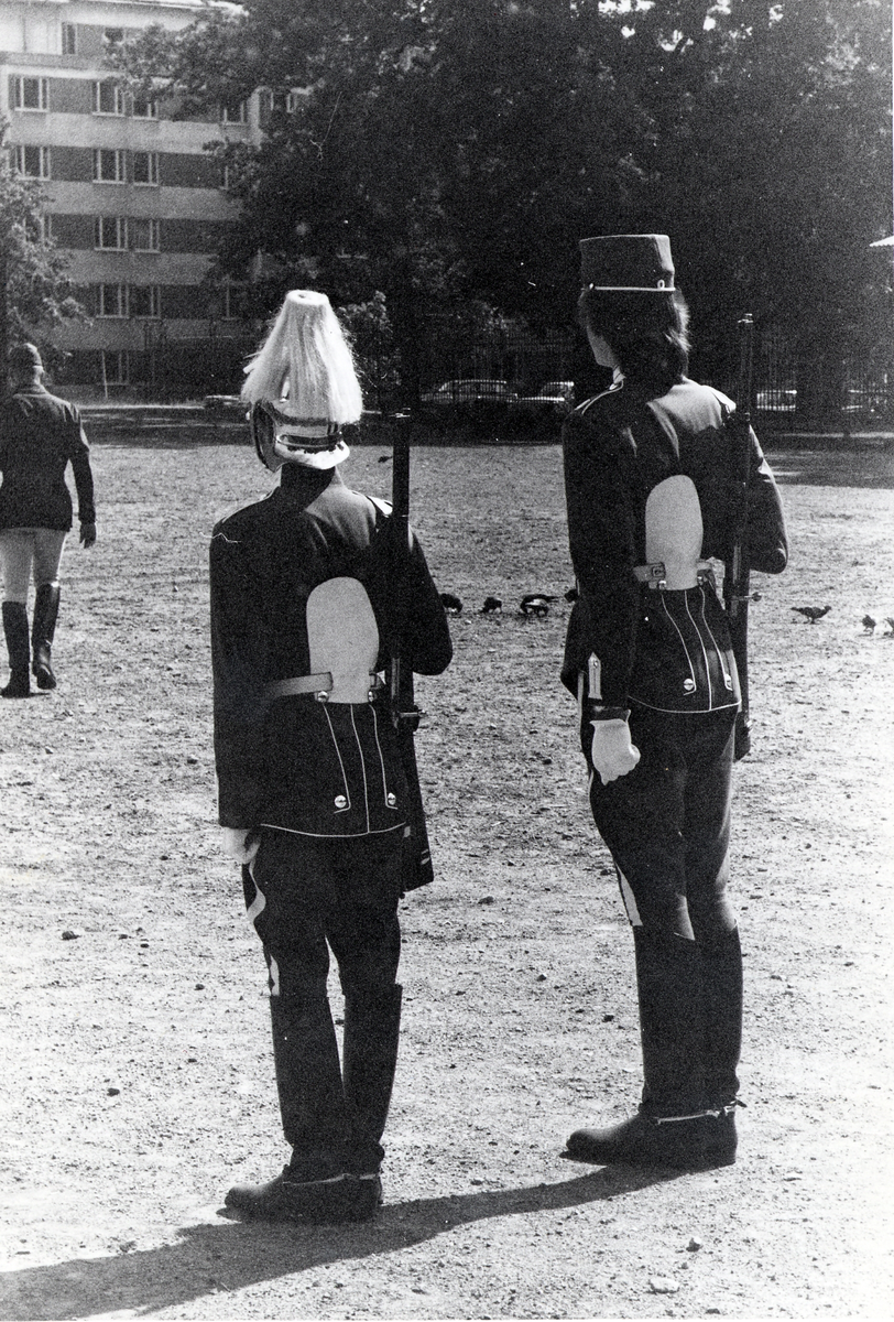 Titel: Livgardets dragoner K 1 övar inför kungabröllopet.