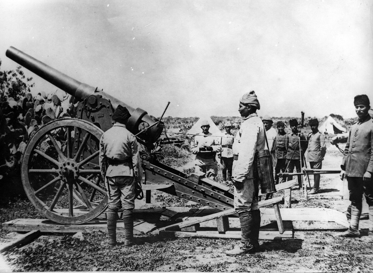 Titel: Första världkriget: Tysk flankbanekanon vid Sinaifronten.