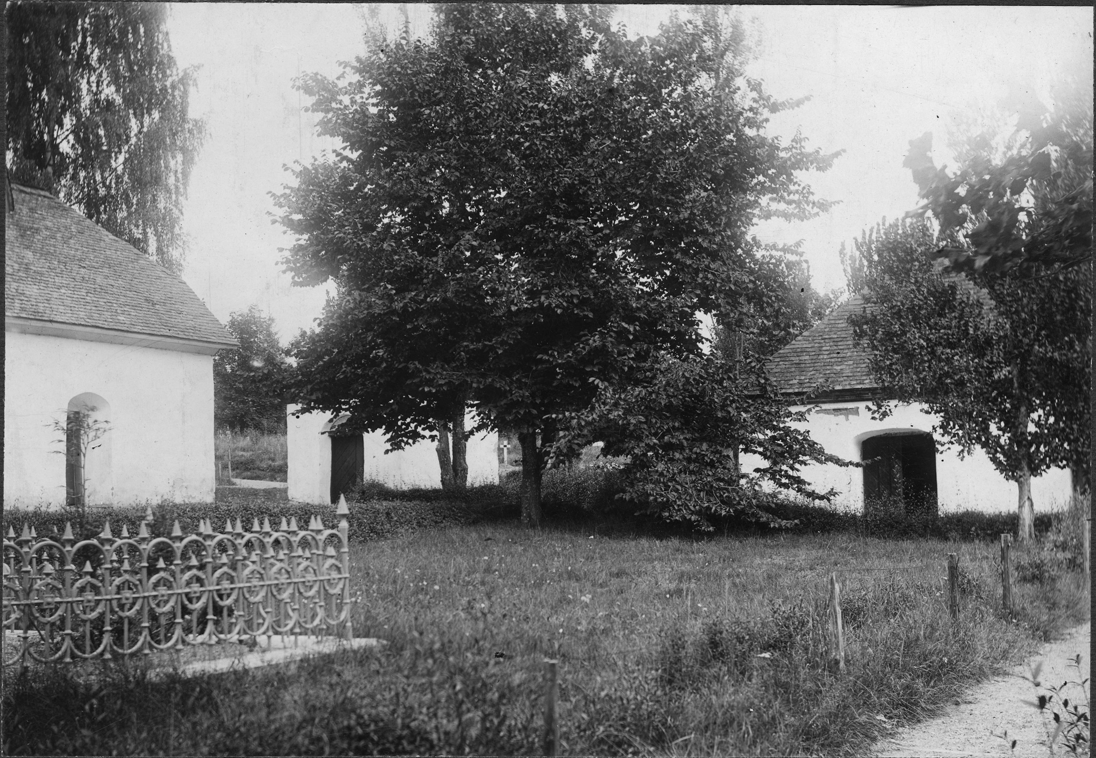Kyrkogården med (troligen) det Hagbergska gravkapellet samt Hedvigs kapell.