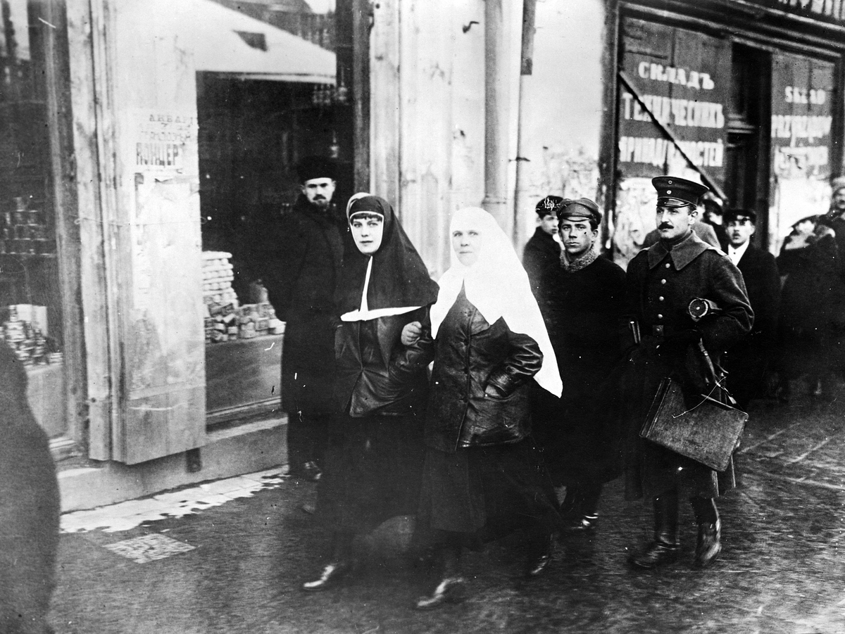 Första världskriget: Bild från den av tyskarna intagna staden Minsk. Ryska sjuksköterskor på väg till sjukhus.