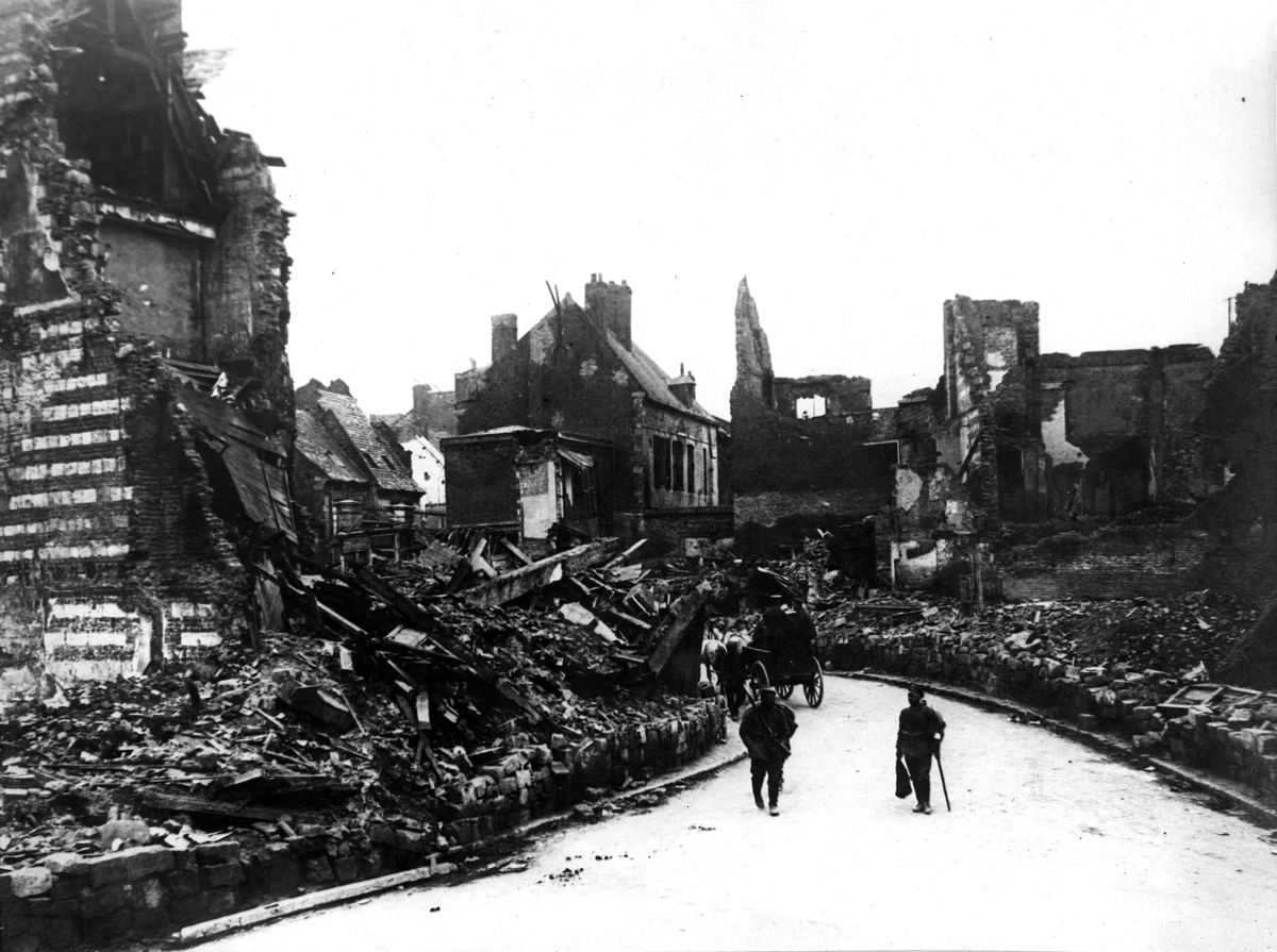 Första världskriget: Den fullständigt ödelagda staden Péronne, där särskillt förbittrade strider ägt rum.