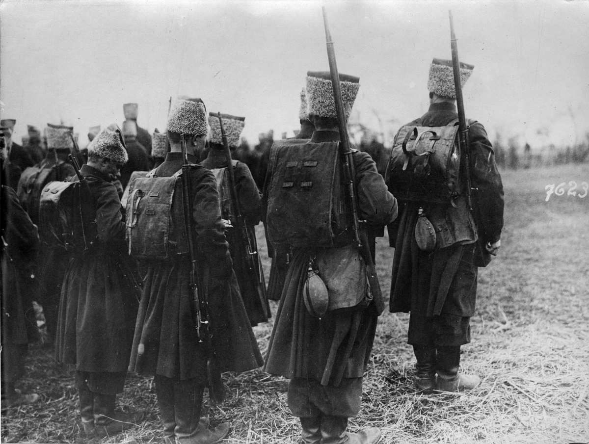 Första världskriget: Republiken Ukrainas nyupprättade här. Trupper tillhörande den första ukrainska divisionen, under utbildning.