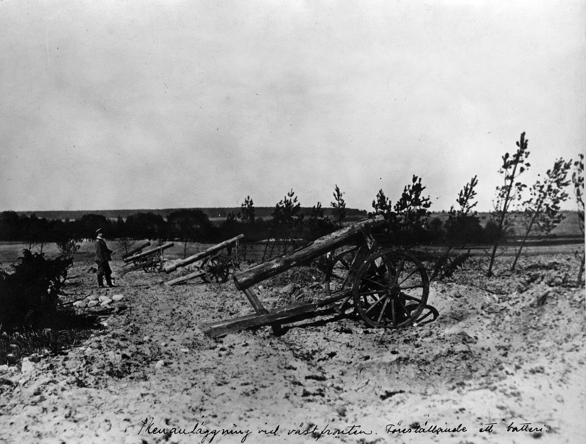 Titel: Första världskriget: Skenanläggning vid västfronten. Föreställande batteri.