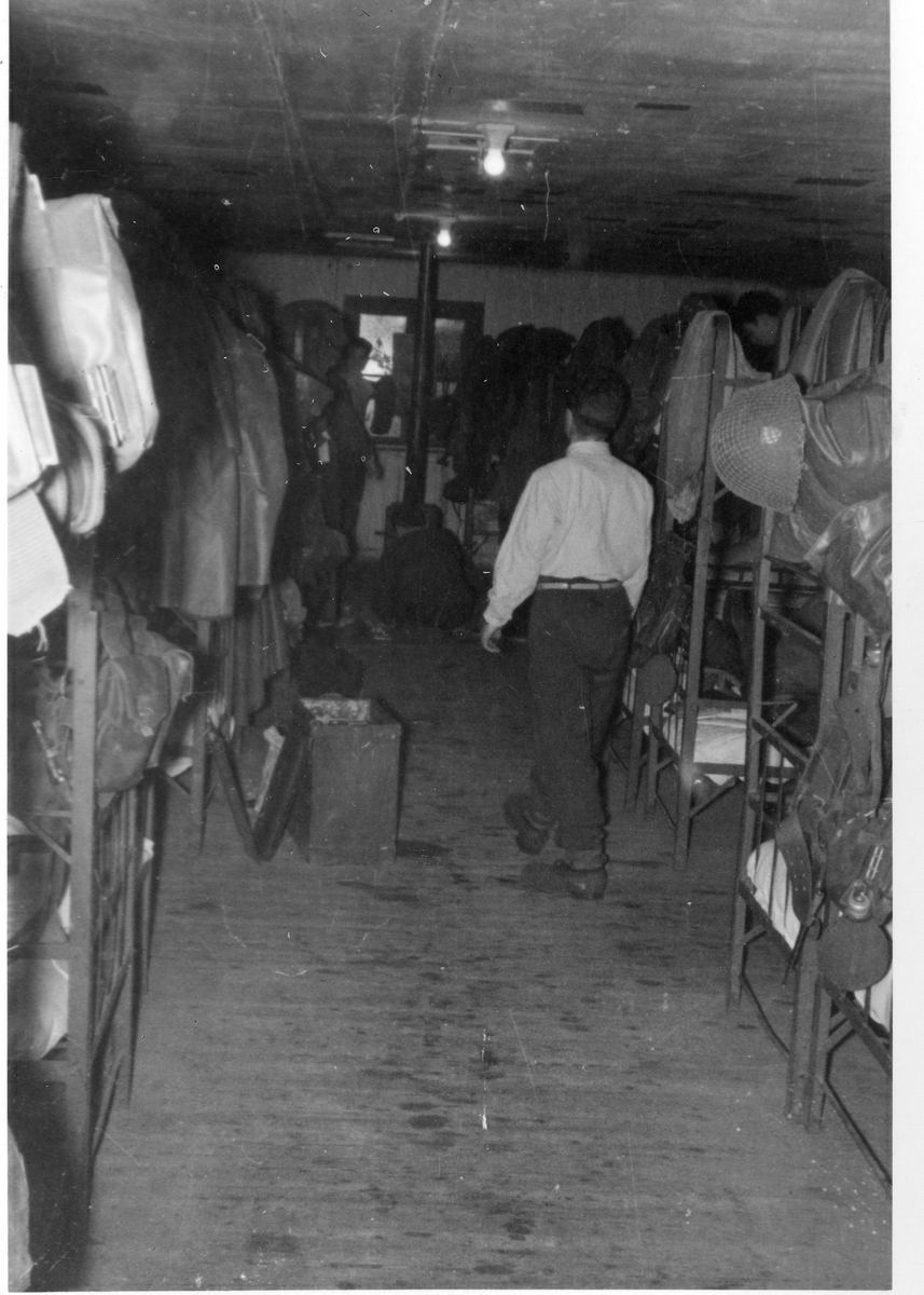 Interiör i en av barackerna på Tånga Hed, Vårgårda. Göta artilleriregemente A2.