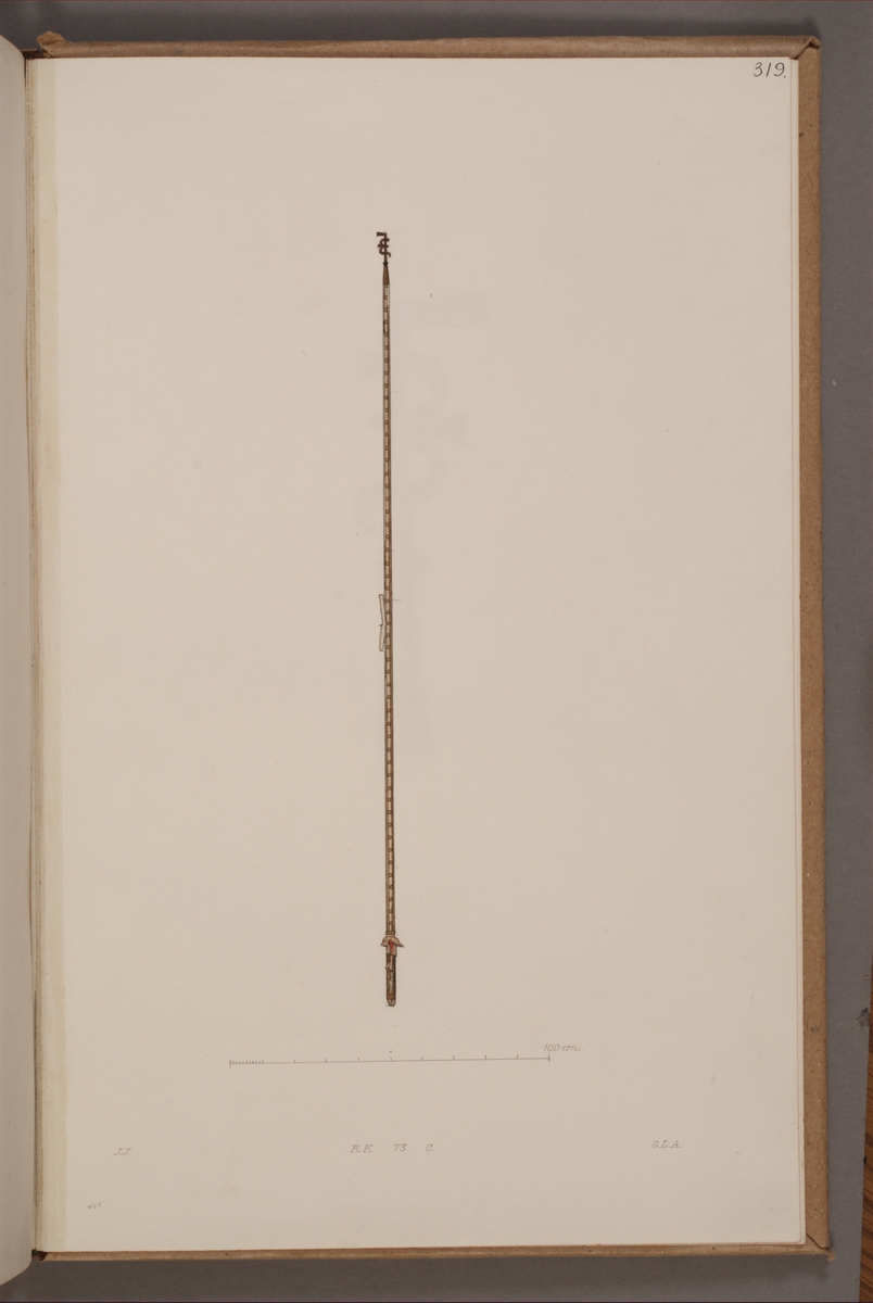 Avbildning i gouache föreställande fanstång tagen som trofé av svenska armén. Den avbildade fanstången finns bevarad i Armémuseums samling, för mer information, se relaterade objekt.