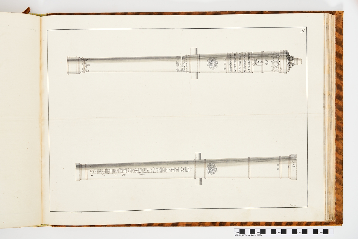 Avbildning föreställande eldrör tagna som troféer av den svenska armén i Polen den 8 juli 1702. Ingår i volym med avbildade kanontroféer tagna åren 1700-1702.