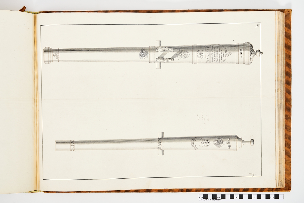 Avbildning föreställande eldrör tagna som troféer av den svenska armén i Polen den 8 juli 1702. Ingår i volym med avbildade kanontroféer tagna åren 1700-1702.
