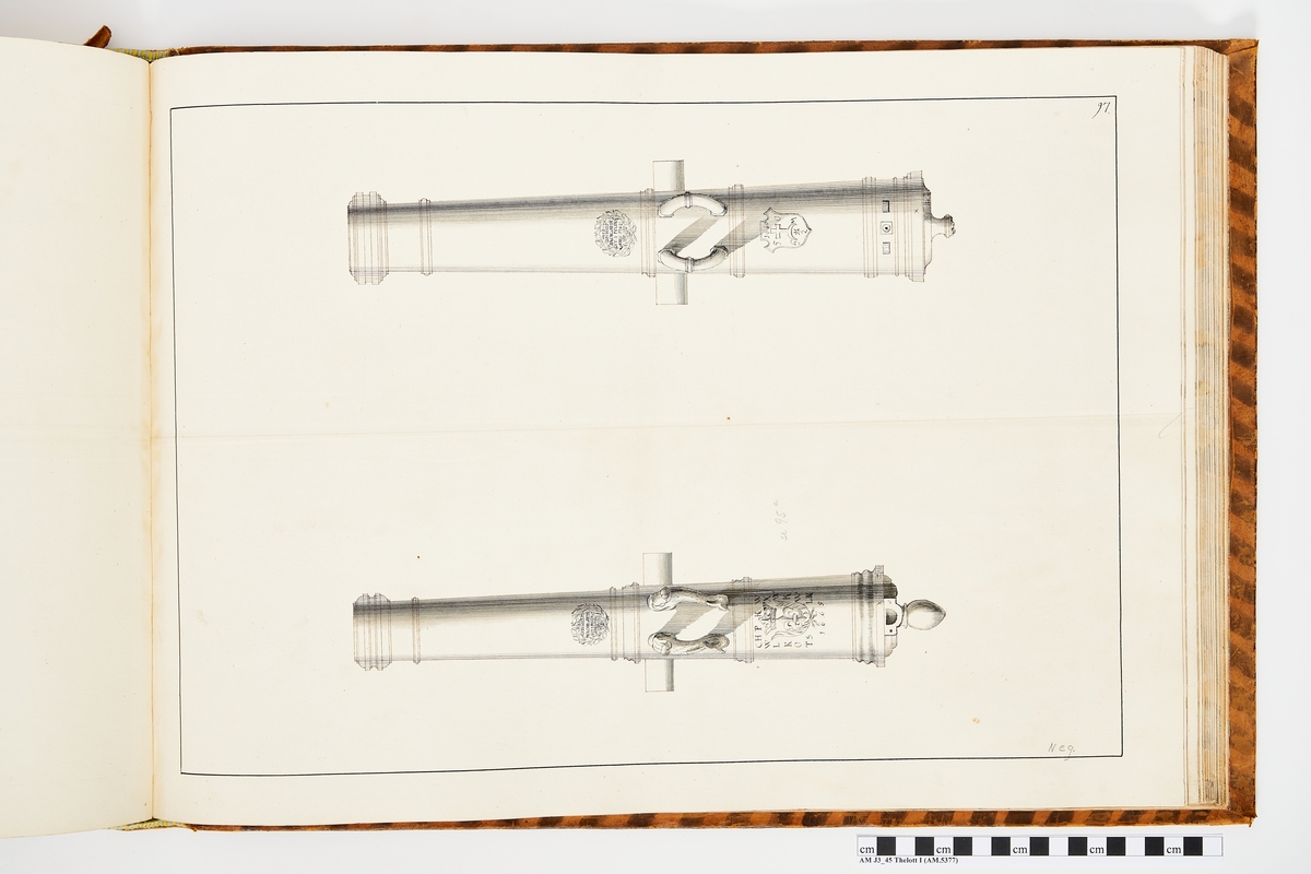 Avbildning föreställande eldrör tagna som troféer av den svenska armén i Polen den 8 juli 1702. Ingår i volym med avbildade kanontroféer tagna åren 1700-1702.
